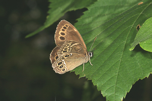 The Woodland Brown is fond of warm, open places in damp, deciduous or mixed woods with well- developed shrub and herbaceous layers. The butterflies rarely visit flowers, preferring to feed on honeydew, moisture on buds, and sap oozing from wounded trees. The males often settle on puddles on the ground, while the females tend to stay in the very top of the trees. Eggs are laid on all sorts of grasses, including fescues (Festuca spp.), meadow-grasses (Poa spp.), small-reeds (Calamagrostis spp.), and false-bromes (Brachypodium spp.), and also on sedges (Carex spp.). The half-grown caterpillar hibernates in a grass tussock, where later in the year it also pupates. The Woodland Brown has one brood a year.