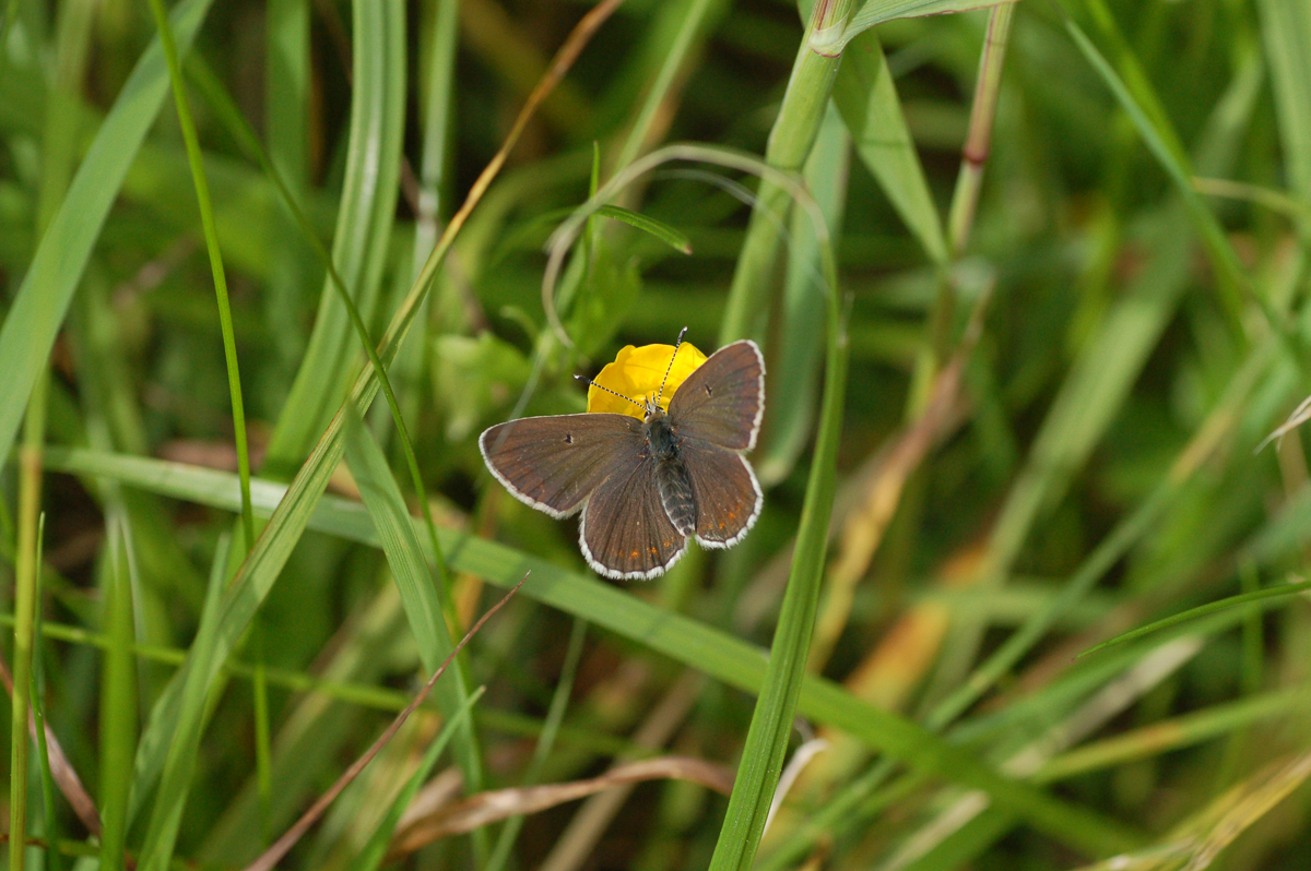 The Northern Brown Argus likes open grasslands or dry vegetation at the edges of woods. It is more closely bound to calcareous soil than the Brown Argus. The eggs are laid on various rockroses (Helianthemum spp.), as well as on various crane’s-bills (Geranium spp.). The caterpillars feed on the leaves, often attended by Lasius ants. When the caterpillars are half-grown, they hibernate. Pupation takes place in the litter layer. There is always only one generation.