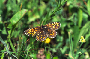 Assmann’s Fritillary occurs on warm grasslands and heath that are often situated at the edges of woodland, or near groups of shrubs. Its foodplants are Ribwort Plantain (Plantago lanceolata), Yellow Rattle (Rhinanthus minor), and the Speedwell (Veronica austriaca). The female lays her eggs in batches on the underside of the leaves. The caterpillars feed communally in a silken nest, where they also hibernate. They then separate, later pupating low-down in the vegetation. This fritillary is single-brooded.