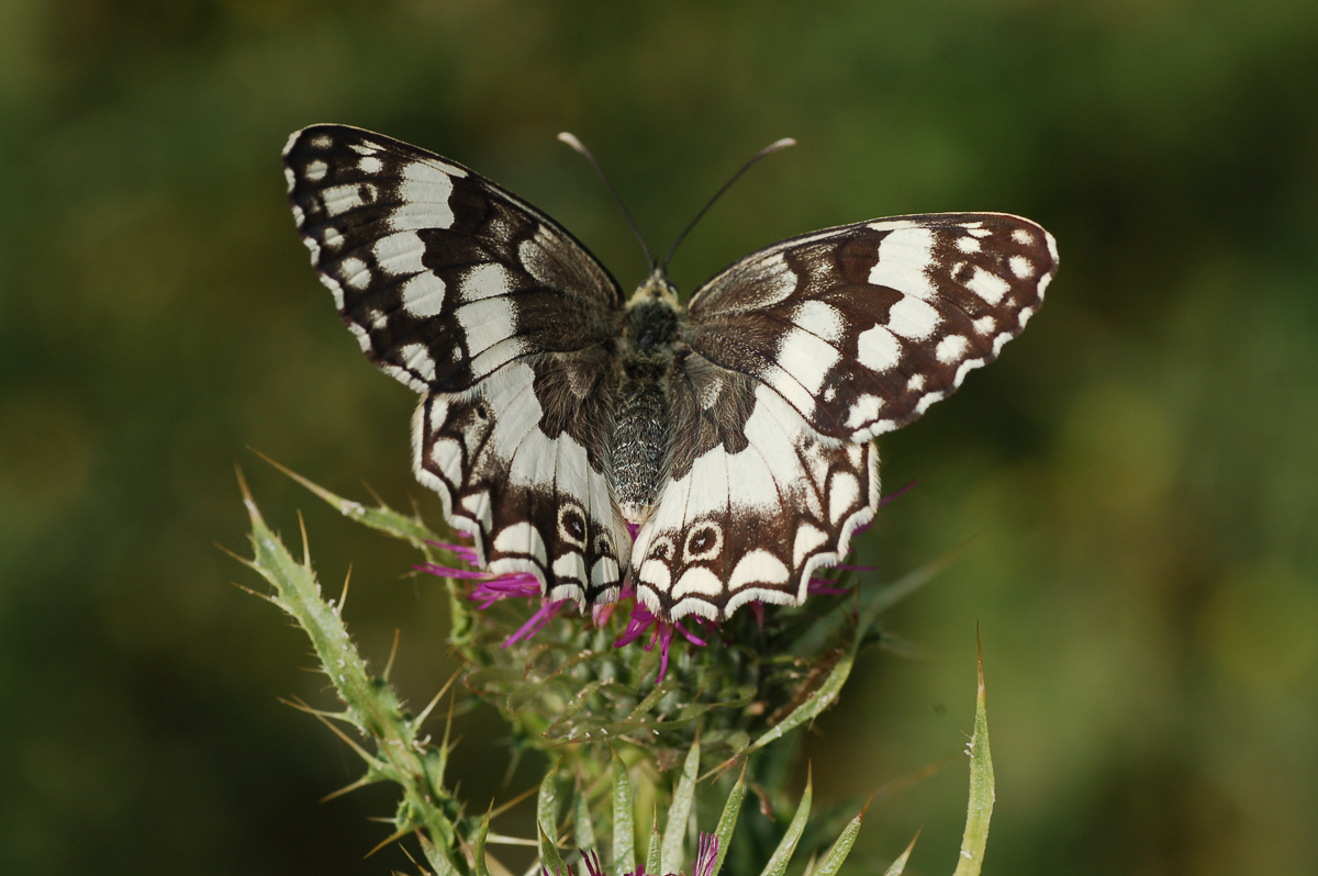 The Balkan Marbled White occurs on dry grasslands, rocky slopes, in open scrub, and in grassy clearings in woods. Sometimes, these butterflies are even seen in villages. The caterpillars feed on different grasses. This butterfly is single-brooded and hibernates as a caterpillar.